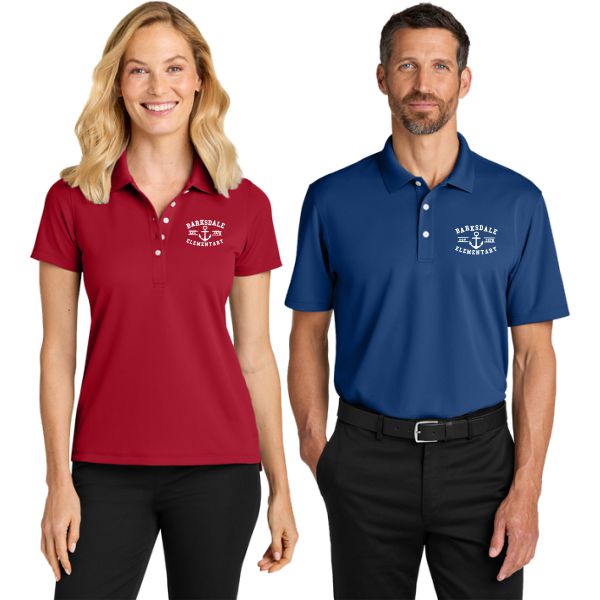 | Features: | -4.6-ounce, 100% polyester jacquard -Stain-release -Snag-resistant -Moisture-wicking -Odor-fighting -UPF rating of 50+ -Flat knit collar -3-button placket on men's -5-button placket on ladies' -Scalloped drop tail hem on ladies' -Faux pearl buttons -Side vents -Straight hem -Tag-free label |